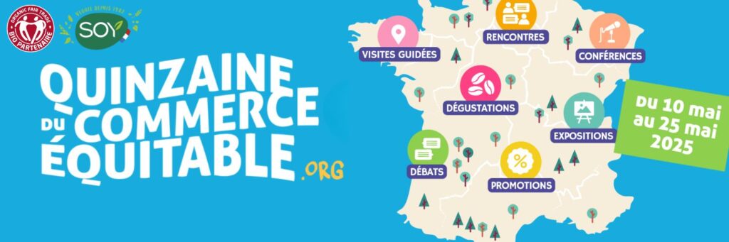 Partout en France, du 10 au 25 mai, la Quinzaine du Commerce Équitable valorise les initiatives qui œuvrent en faveur d’une consommation plus équitable pour les producteurs, les consommateurs et l’environnement 🌍