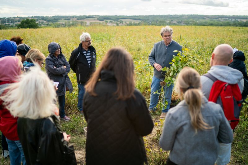 Daniel Gerber, partenaire AGRIBIO UNION a partagé son savoir lors d’une journée sur le terrain. Au cœur des champs de soja, céréales et légumineuses, Daniel a dévoilé ses pratiques ingénieuses pour favoriser la biodiversité : cultures, élevage, apiculture et haies. Des sujets captivants ! 🙌