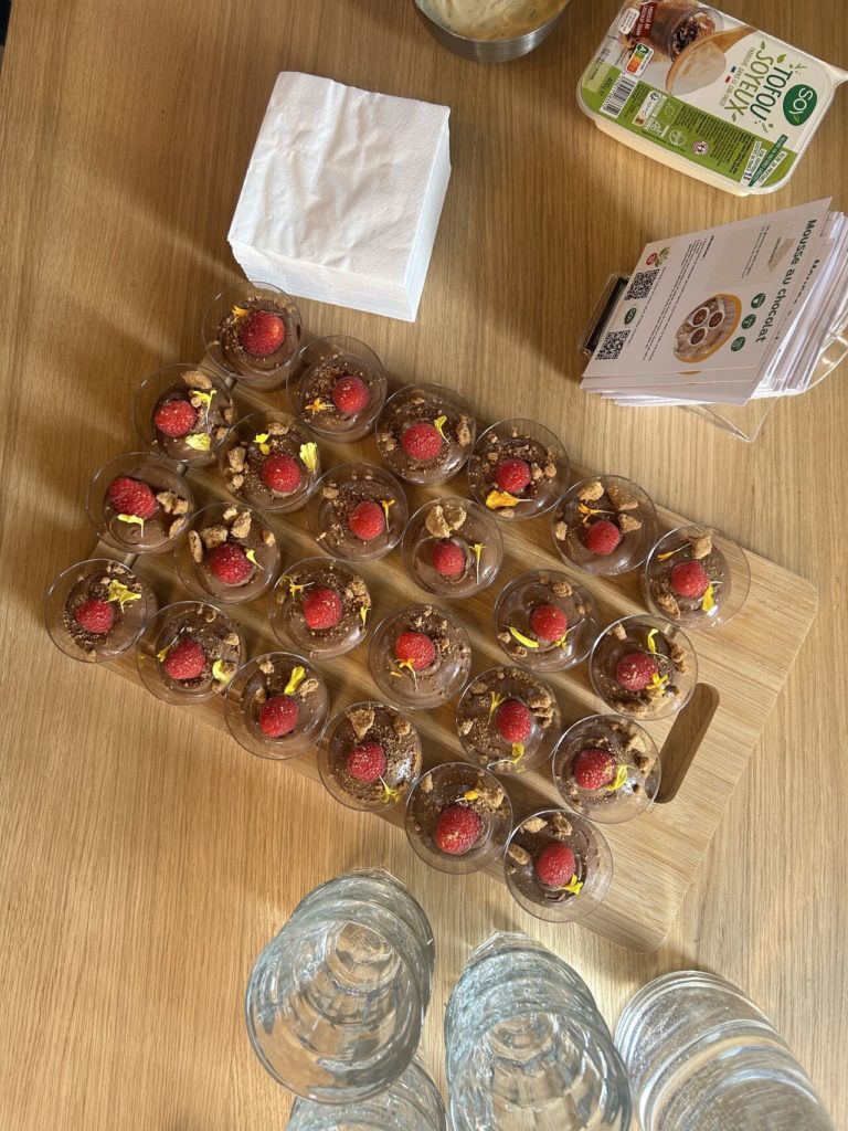 Pour marquer le coup, nos équipes à Revel ont eu la chance de déguster un buffet végétarien 100% tofu, concocté par Paul Guilhem, et d’assister à des démonstrations culinaires animées par Francky Kowalski. Au menu : du tofu façon pulled pork, des champignons farcis, des chips de tofu croustillantes, des avocado toast avec une brouillade de tofu, du tofu tonkatsu et des mousses au chocolat vegan.