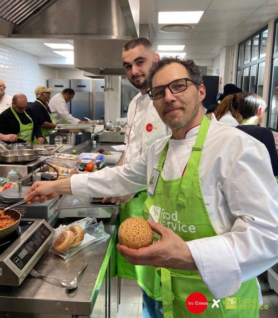 Dans le cadre du partenariat avec les Crous, nous avons invité les chefs des restaurants des académies d’Île-de-France à venir cuisiner avec nous de délicieuses recettes réalisées avec nos produits : boulettes de seitan, lentilles, emmental, keftas, tofu soyeux… Mais aussi une nouveauté développée spécialement pour les Crous : un falafel menthe coriandre.